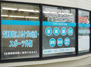 しばらく進んで「千代三丁目交差点」を左折。すぐ右手にショッピングパーク千代の入り口があり、入口を入って左側が当院です。