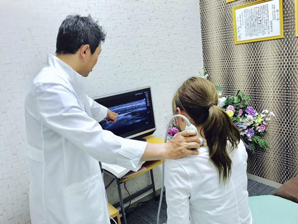 まず、関節の可動域の測定や整形外科的テスト法、エコー診断装置を用いての客観性のある診察を行なっていきます。