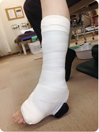 当院では足首の捻挫、骨折の患者様に 「ヒール付きキャスト」というギプス固定を行います。